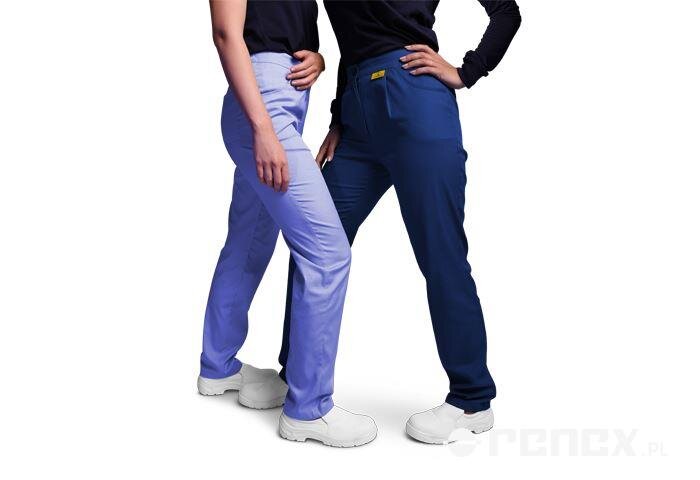 Damski krój został dopasowany do sylwetki, a zastosowanie krytego zamka nadaje spodniom estetyczny wygląd. Trzy praktyczne kieszenie – dwie boczne i jedna tylna po prawej stronie – zwiększają funkcjonalność odzieży. Oznaczenie ESD znajduje się w bocznym szwie, co ułatwia identyfikację zgodności produktu z wymaganiami ochrony elektrostatycznej.