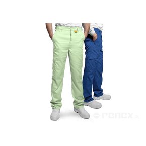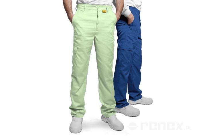 Męski krój został zaprojektowany z myślą o ergonomii i funkcjonalności – spodnie wyposażone są w kryty zamek oraz cztery praktyczne kieszenie: dwie boczne, jedną tylną (po prawej stronie) oraz jedną na prawej nogawce. Oznaczenie ESD w bocznym szwie umożliwia łatwą identyfikację zgodności z normami ochrony przed wyładowaniami elektrostatycznymi.