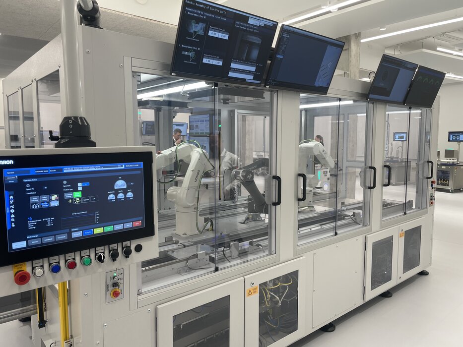 Całość uzupełniają autonomiczne roboty mobilne (AMR) i manipulatory mobilne (MoMA), które łączą poszczególne stacje, prezentując elastyczne rozwiązania logistyczne. Te samodzielne jednostki transportowe optymalizują ruch materiałów między stacjami roboczymi, eliminując potrzebę ręcznego przemieszczania produktów i komponentów.