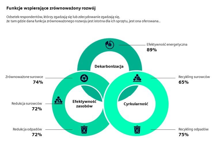 Jak pokazuje badanie Siemens Financial Services, producenci maszyn chętnie promują dekarbonizację. Aż 89 proc. z nich deklaruje, że ich rozwiązania zwiększają efektywność energetyczną, a 75 proc. wdraża systemy recyklingu odpadów.